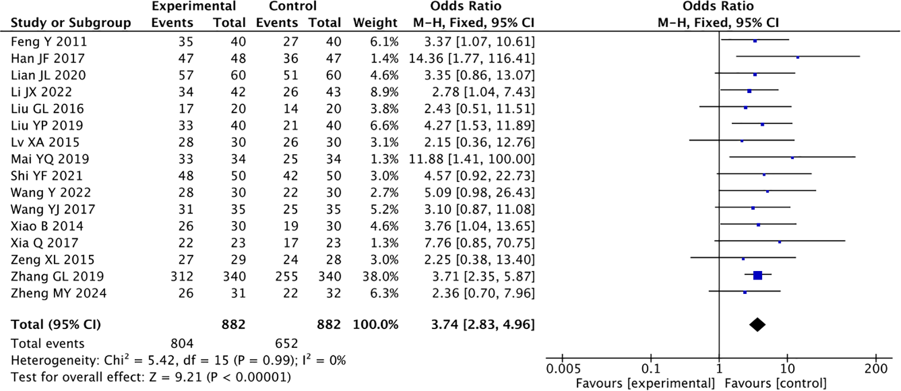 | Acupuncture | 0 | 0.97 | Fixed | 4.96 | <0.00001 | 3.28 (2.05 to 5.25) | 265/266 | 88.3 |