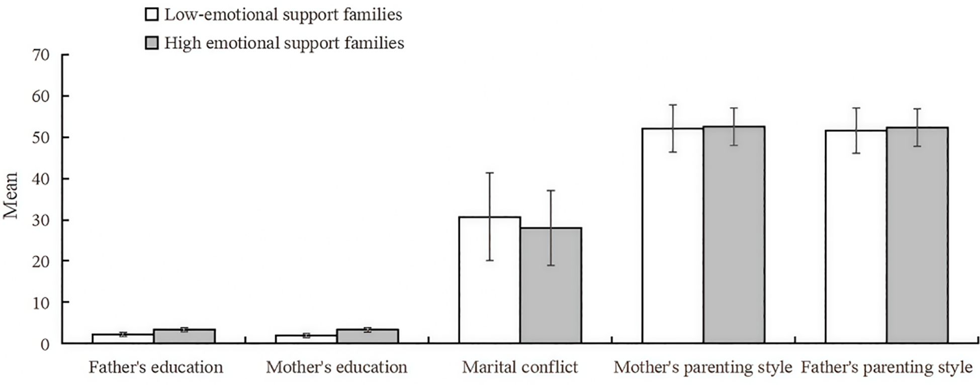The analytical dimensions of the family emotional environment mainly refer to Yufeng Guo’s methodology (31). The family emotional environment factors were evaluated using the Parenting Behavior Inventory (PBI), the Children’s Perceived Marital Conflict Scale(CPIC), the Father’s education, and the Mother’s education.