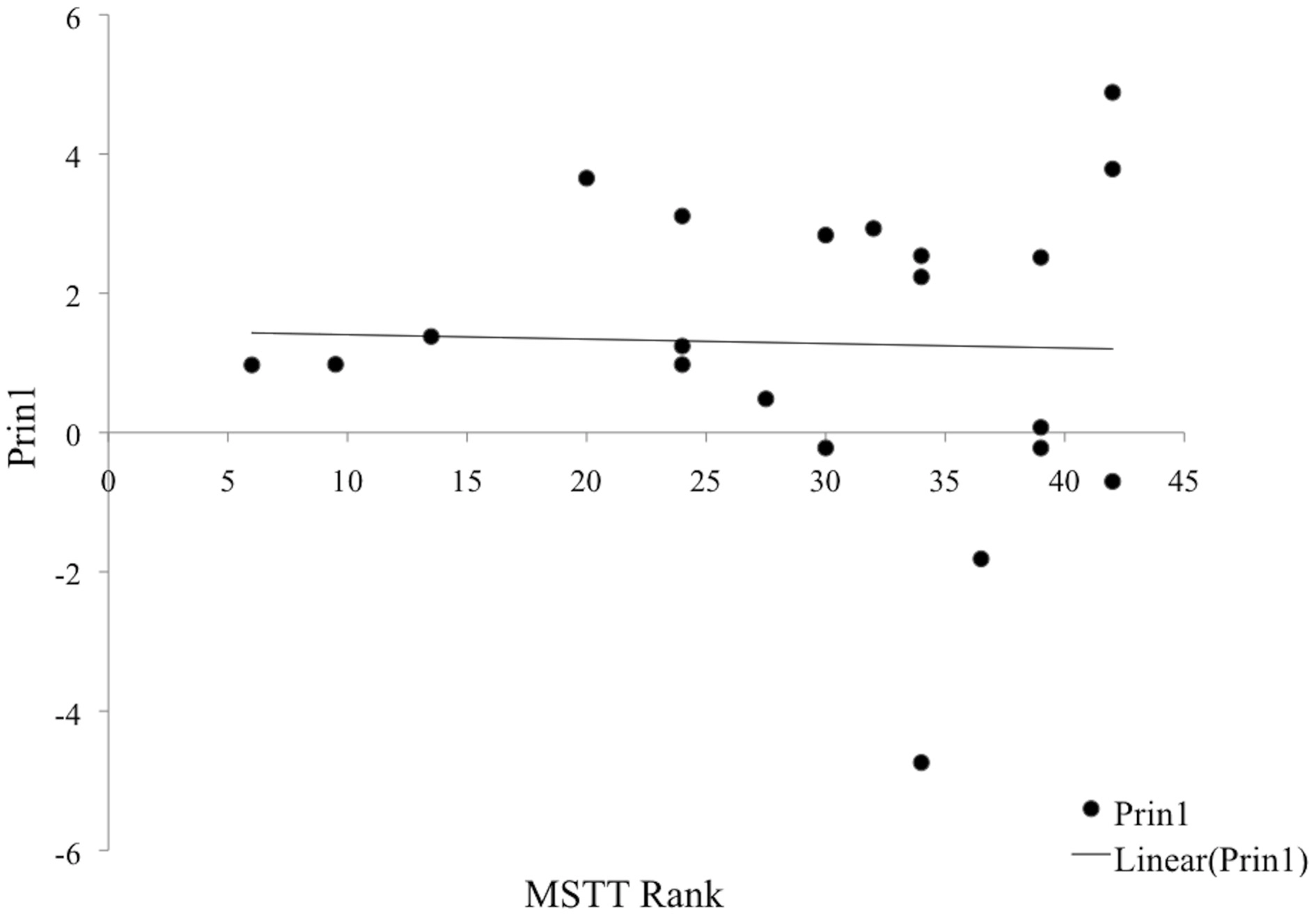 Relationship of Prin 1 to MSTT in children with no SR or IR.