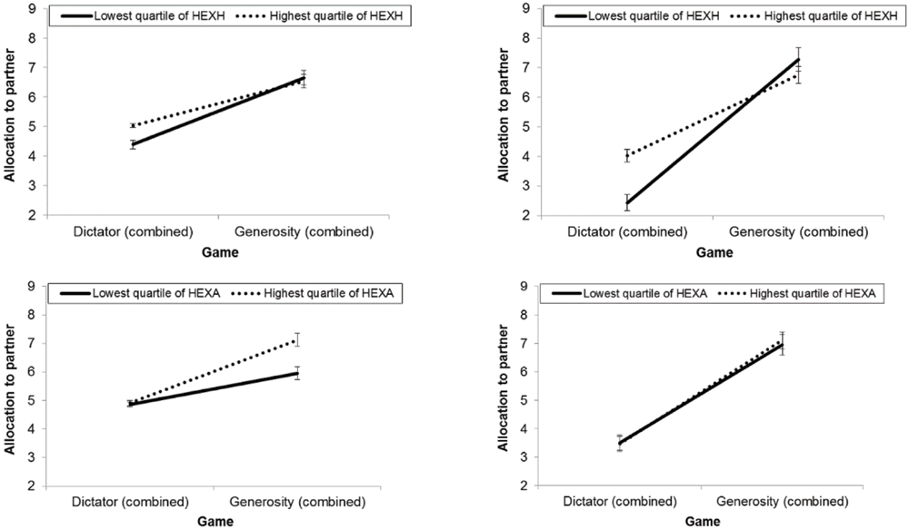 Furthermore, the HEXACO model and its partitioning of the prosocial domain into active (i.e., honesty-humility) and reactive (i.e., agreeableness) forms of reciprocal altruism is ideally suited to the finer-grained analysis of positive and negative reciprocity in economic games. HEXACO agreeableness has been negatively associated with self-reported negative reciprocity (Perugini et al., 2003) and shown to predict acceptance of unfair offers in ultimatum games (Hilbig et al., 2013; Thielmann et al., 2014). Meanwhile, honesty-humility has been found to predict trustworthiness, measured by the amount returned in the trust game (Thielmann and Hilbig, 2015). However, this was independent of prior trust, suggesting that the relation is likely driven by a mechanism of “unconditional kindness” (i.e., giving in the absence of any previous or future interaction with one’s partner, such as in a one-shot dictator game), rather than positive reciprocity per se (Thielmann and Hilbig, 2015). Other research using wealth redistribution paradigms similarly found that the behavioral expression of honesty-humility is less conditional on fairness norms overall and instead resembles an overall pattern of benevolence (Hilbig et al., 2015b).