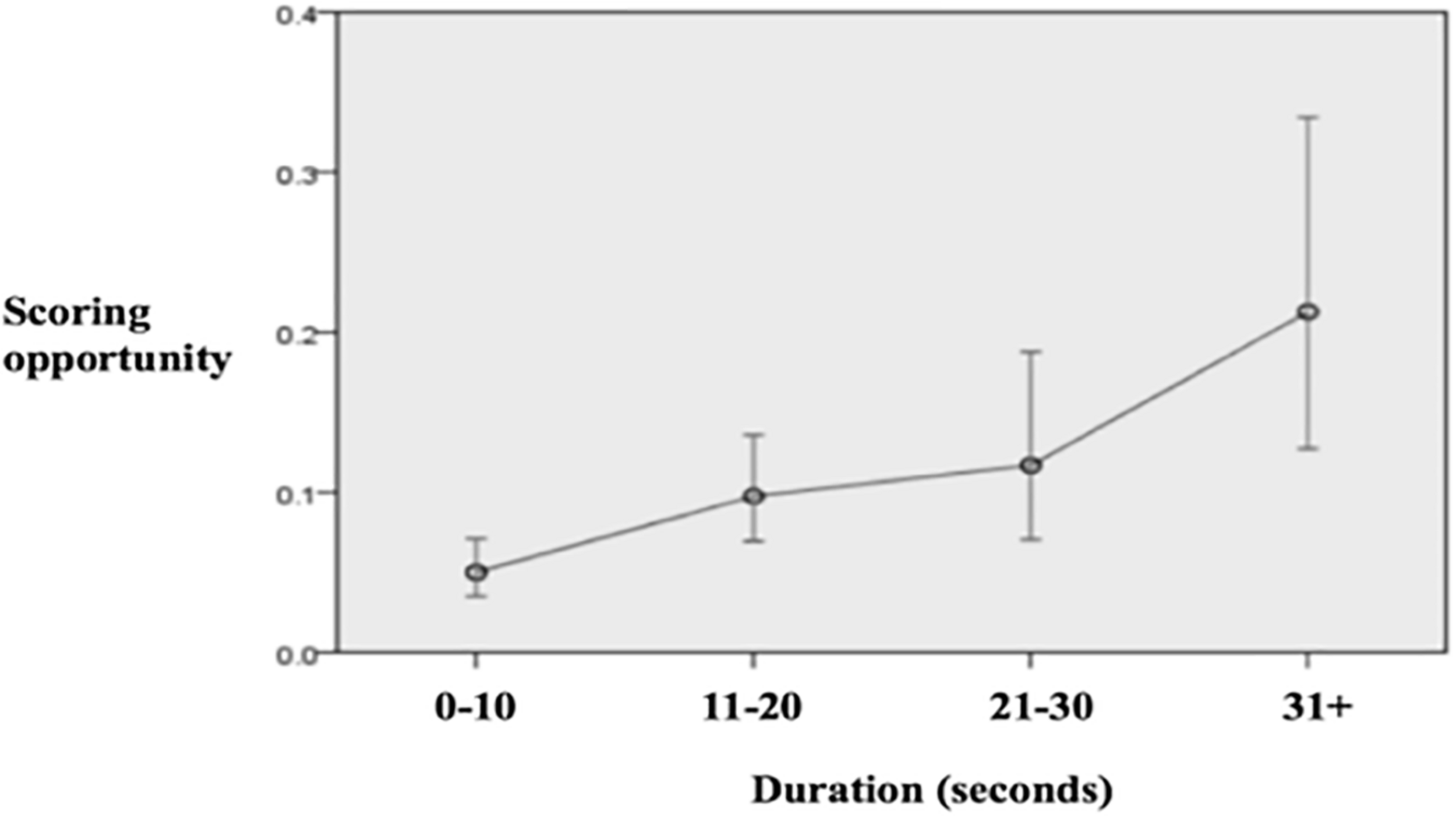 Duration of the attack: duration of the offensive sequence in seconds. Four categories were considered: