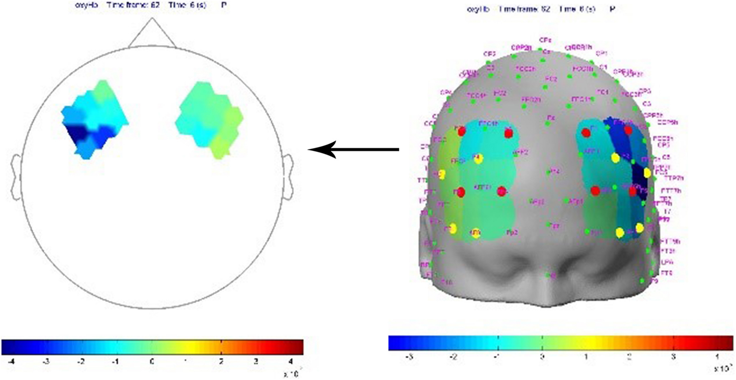 The fNIRS shows the relative changes in hemoglobin levels, calculated using the modified Beer-Lambert law (Figure 1): oxygenated hemoglobin change: delta O2Hb (μmol/L), deoxygenated hemoglobin change: delta HHb (μmol/L) and total hemoglobin change: delta cHb (μmol/L).