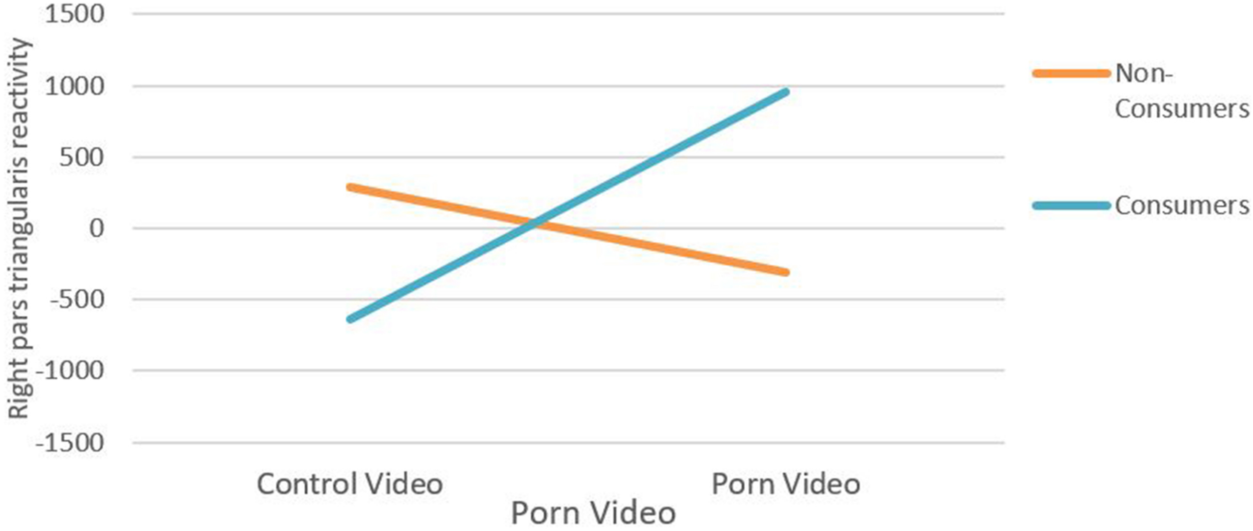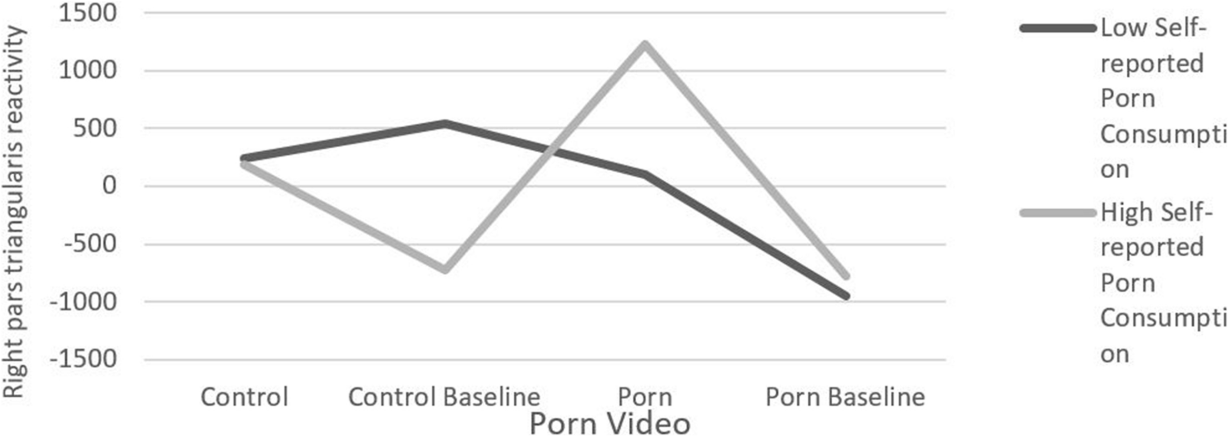 Right pars triangularis reactivity as a function of self-reported porn consumption and porn video.