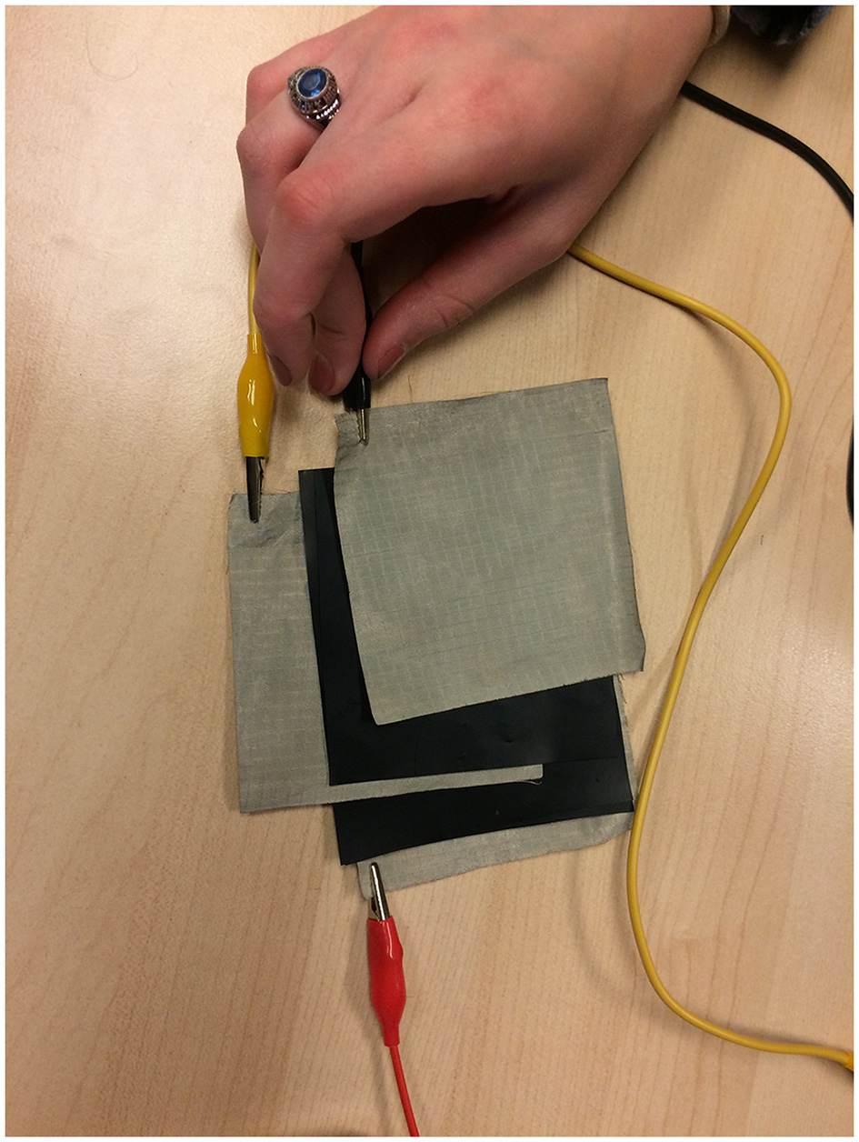 We found valuable inspiration in the literature on soft computation, a field that is contemporary to affordable electronics. Soft computation was defined by Berzowska and Bromley (2007) as “the design of electronic technology that is composed of soft materials such as textiles and threads. Soft computation is also predicated on traditional textile construction methods such as sewing, embroidery, and appliqué [sic] with various conductive and active materials to create interactive fabrics” (Berzowska and Bromley, 2007). Currently, wearables are extensively developed for medical (Patel et al., 2012), fashion (Seymoun and Bello, 2008), dance performance (Sicchio et al., 2016), and interactive installations (Giordano et al., 2015; Lamontagne et al., 2015). As musical interfaces, wearables have been predominantly materialized in the form of gloves (Sonami, 2014), and bodysuits (Bhagwati, 2018).