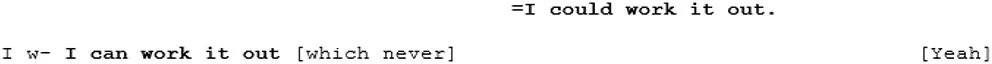 The unfamiliar cross-dispositional conversation 15 (where A6 meets B4) provides a useful comparison. There are just a couple of moments fairly early into the conversation where B4 interjects while A6 is speaking. These interjections are phatic agreements, but because they are more substantial than X6's simple “Mmms” (in familiar cross-dispositional condition) they arguably require more processing effort.