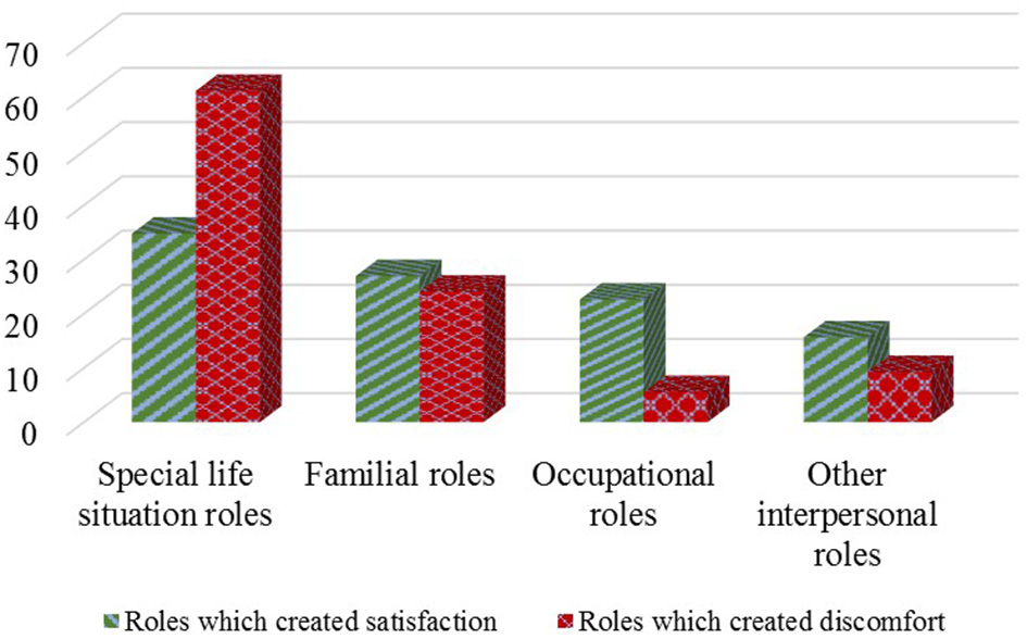 We gave special attention to evaluating the roles played by students as members of the group sessions led by their colleagues. In particular, an item with two questions was taken into account for this study. Students were asked to reflect and to write about the following personal experiences: “Choose 3 roles that brought you the greatest satisfaction and explain the source of satisfaction (I managed to get into the role, the role made me more sensitive, the role raised my awareness, through the role I learned new things)?”; and “Choose 2–3 roles that made you uncomfortable and explain the source of dissatisfaction (I did not manage to get in the role, I was asked too much, I did not know what to do in the role, I was not interested, or other reasons)?”