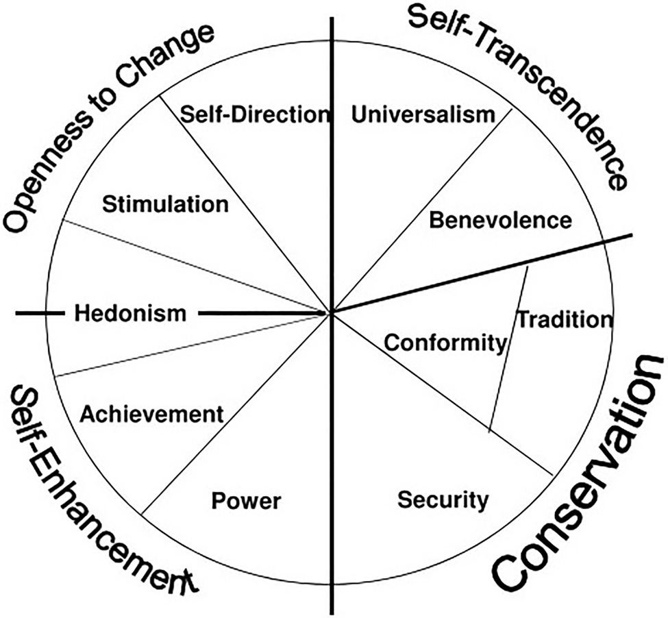 The Circular Structure of Values Relations and Inter-Relatedness. This figure represents the theoretical model of relations among ten types of value. From Schwartz (2012b). The figure has been used with the permission of the author.