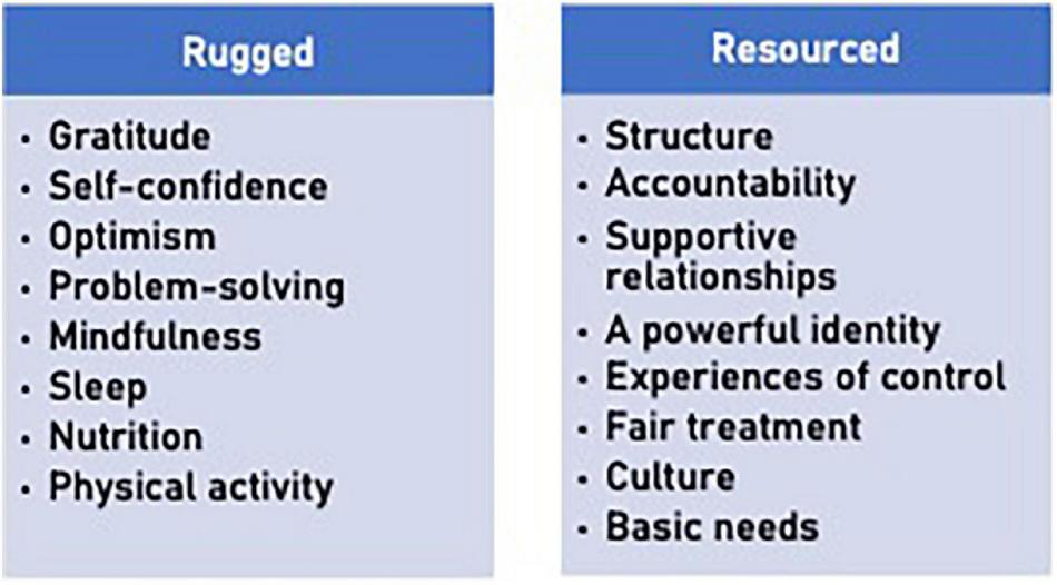 Different conceptualizations of resilience over the years have influenced programs designed to improve coping capacity. Early perspectives likened resilience to a largely static, dispositional personality traits which were thought to explain why some individuals emerged relatively unscathed from disadvantage or trauma (Anthony and Cohler, 1987; Hu et al., 2015; Galatzer-Levy et al., 2018). Such perspectives could do little, however, to inform programming as the premise was that latent capacities needed early and sustained nurturing rather than later remediation. More recently, however, attention has shifted to the growth in people’s patterns of functioning over time despite a “bad start,” with individual resilience seen as malleable and a set of capacities that can be increased or trained (Masten, 2001; Luthans, 2002). This resulted in many resilience promoting initiatives focused on individual cognitions or behaviors, as evidenced by the popularity of training in self-regulation and positive thinking. Further research into the factors that contribute to such outcomes has revealed the complex interplay of person and environmental factors which have supported better accounts of resilience as a process of interaction. This perspective supports the view that positive developmental trajectories are possible when individuals have the personal, social, and physical resources they need for optimal development even when early life experiences may compromise a person’s realization of their potential (Hambrick et al., 2019). A multisystemic model of resilience such as this highlights the capacity of biopsychosocial and social-ecological systems (which provide these resources) to support internal and external conditions for well-being while enhancing the quality of life for different populations, in particular those impacted by structural disadvantage or conditions that threaten personal development (Smeeth et al., 2021; Ungar, 2021). Understood this way, resilience is the process whereby individuals navigate to the resources they need to function optimally, as well as the ability of individuals to negotiate for resources to be provided in contextually and culturally meaningful ways (Ungar, 2011). These dual processes of navigation and negotiation explain why individual qualities like grit, optimism, and self-regulation can only produce positive outcomes if social and physical ecologies provide opportunities for people to develop and apply their strengths.
