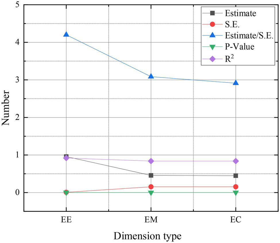 Figure 7 shows the reliability of the dimension in the questionnaire. The constituent reliability is greater than 0.7, and the AVE is greater than 0.5, indicating that it has good constituent reliability and convergence validity. Combined with the calculation results in the questionnaire, it is found that the reliability values of each dimension meet the needs of analysis and research, and the questionnaire has high reliability (Dafna et al., 2020; Hofgaard et al., 2021).