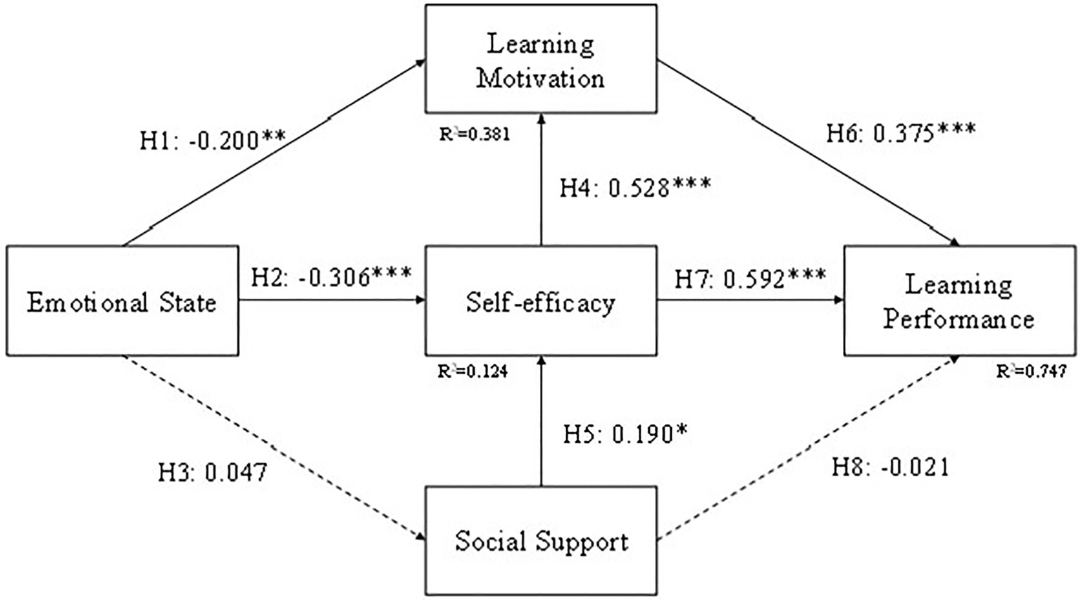 H8: Social support is positively related to learning performance.