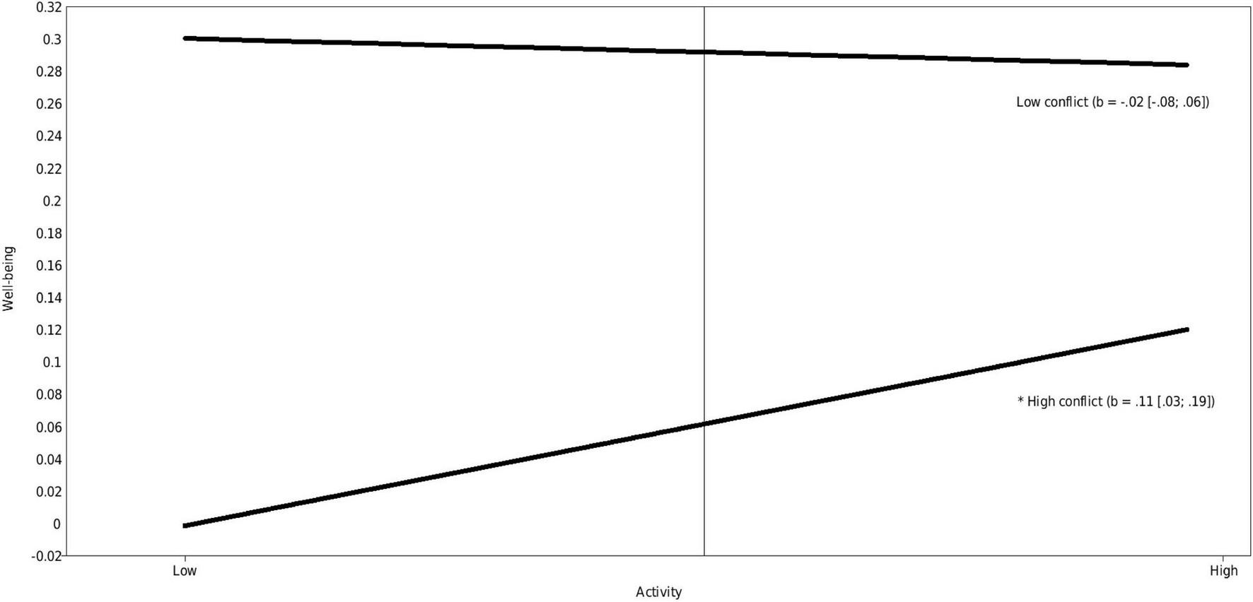 Before turning to our research questions, we examined the within- and between group variance components for children’s well-being. The results showed an intraclass correlation coefficient (ICC) of 0.074. This means that 7.4% of the variance in children was due to variance between groups. As this exceeded the suggested 5% threshold (Raudenbush and Liu, 2000; Hox et al., 2018), multilevel analyses were used. The difference between groups is also shown in the significant effects of the intercepts in Tables 3, 4.