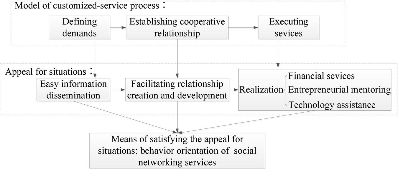 According to contingency theory, to drive the growth of tenants, parties of co-production should adjust their behaviors with dynamic environment (Phan et al., 2005). Since social networking services create situations that facilitate the information dissemination, sparking connections, and realization of customized services, all the customized services should resort to being embed in social networking services.