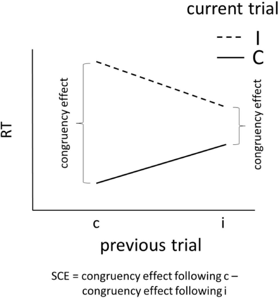 This phenomenon, known as “conflict adaptation,” the “Gratton effect,” “congruence sequence effect,” or “sequential congruency effect” (SCE) is a highly cited phenomena in cognitive psychology and continues to spark intense debates regarding its appearance. Most studies have been concerned with the presence or absence of the effect under various conditions as it can inform whether the effect is driven by top-down (Botvinick et al., 2001; Clayson and Larson, 2011; Feldman and Freitas, 2016), bottom-up (Hommel et al., 2004; Schmidt and De Houwer, 2011), or a combination of both top-down and bottom-up processes (review in Egner, 2014).