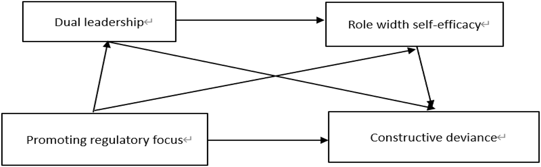 H4: Promoting regulatory focus, role width and self-efficacy play a chain intermediary role between dual leadership and constructive deviant behavior.