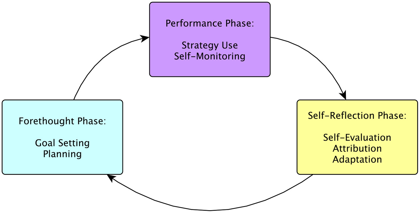 There are several different theories of SRL, which, broadly, all encompass the processes and skills related to analyzing tasks, setting goals, developing strategies to reach those goals, monitoring progress toward those goals, and reviewing performance and outcomes (Puustinen and Pulkkinen, 2001; Boekaerts and Corno, 2005; Künsting et al., 2011; Winne, 2011; Panadero, 2017). The models vary, however, in how they conceptualize each aspect of SRL and what skills they emphasize (Panadero, 2017). Perhaps the most influential of SRL models, however, is Zimmerman's Cyclical Phase Model, which has influenced much of the SRL work and models that have come after (Zimmerman, 2000; Puustinen and Pulkkinen, 2001; Zimmerman and Campillo, 2003; Panadero, 2017). The Cyclical Phase Model is often used in the literature to study SRL in various academic contexts (Barnard-Brak et al., 2010; Lee et al., 2010; Malmberg et al., 2017; Min and Foon, 2019) and has been built upon by more recent SRL models (Hadwin et al., 2011; Panadero, 2017).