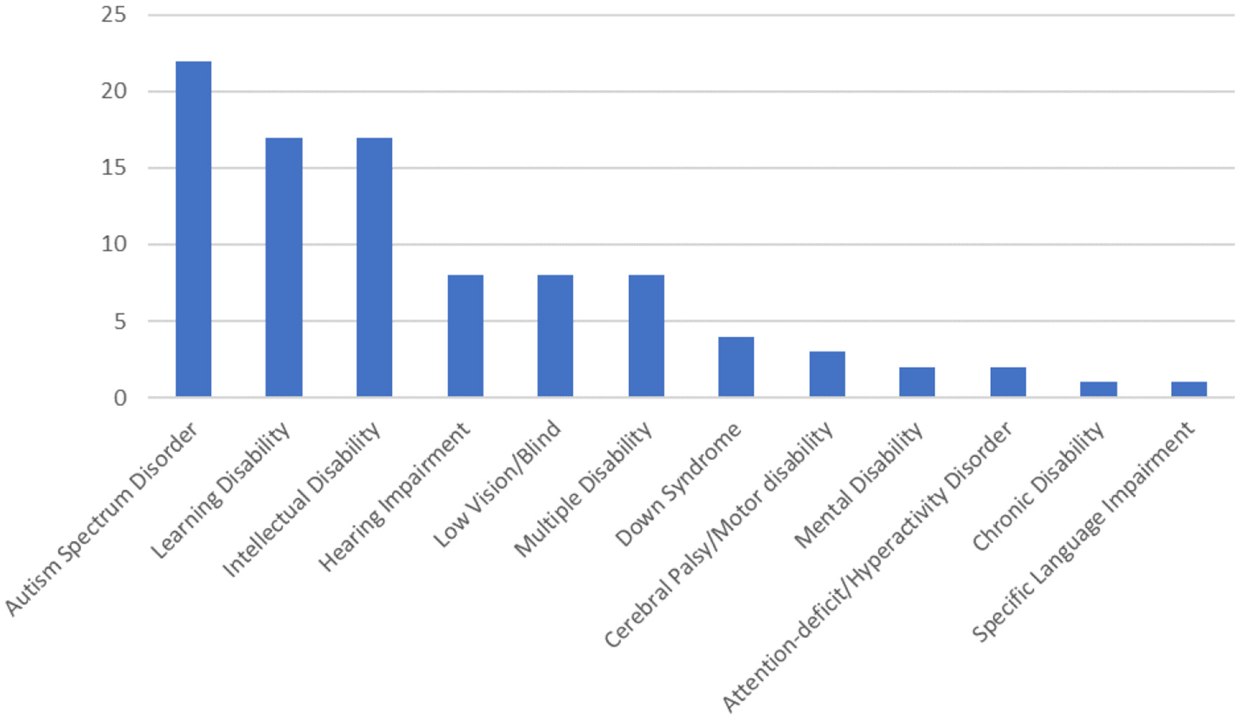 Distribution of studies based on learners' disabilities.