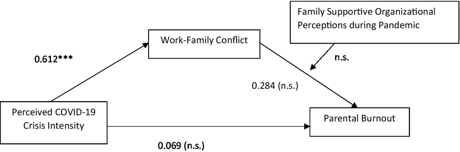 The relationships between Perceived Covid-19-Crisis Intensity, parental burnout, work–family conflict and family supportive organizational perceptions as described above are shown in the conceptual model below (Figure 1).