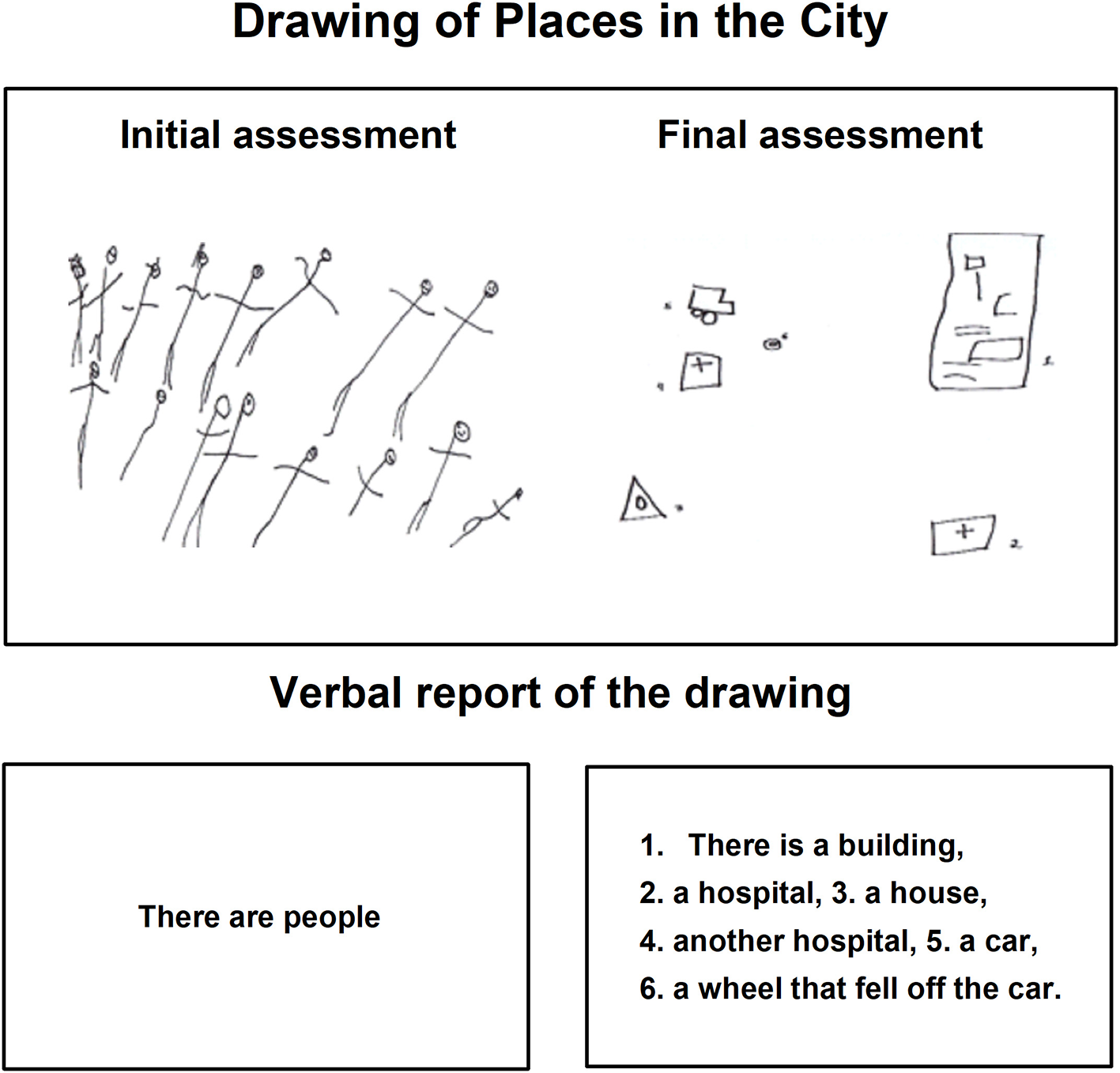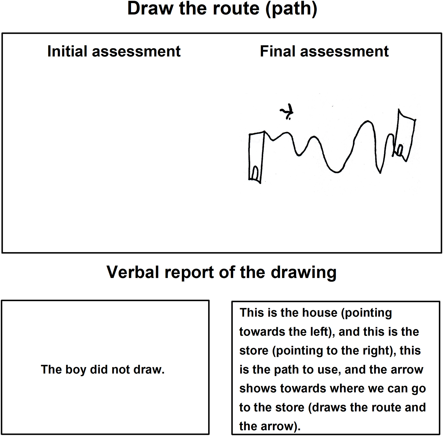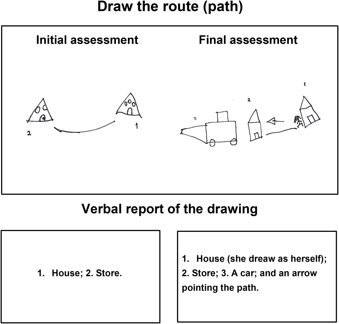 Child A drawing in the pictogram task during the initial and final assessments.