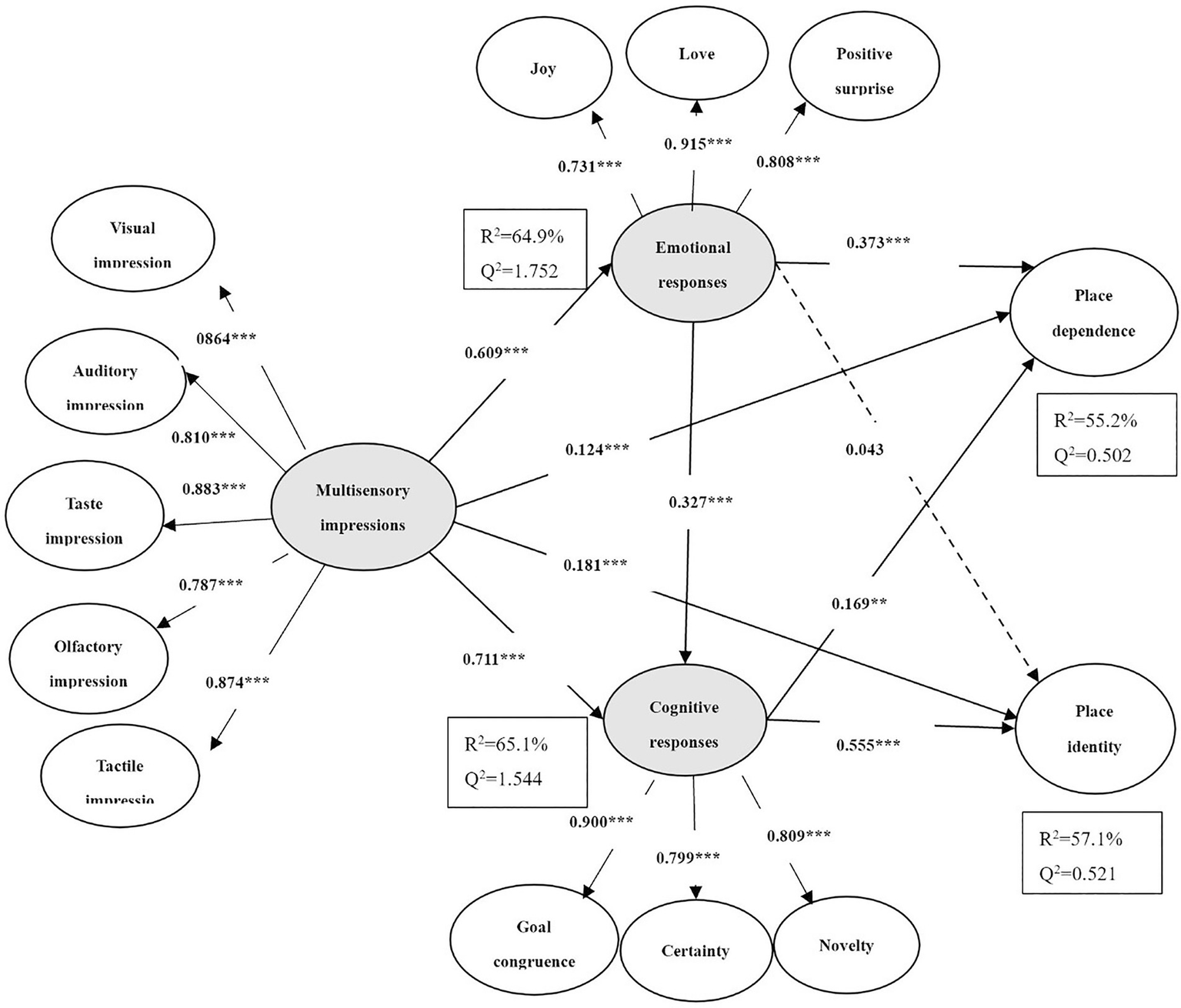 H1a: Multisensory impressions have a significant positive impact on place dependence.