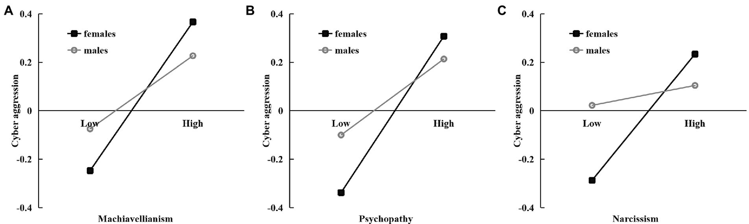 Wright et al., 2020). Thus, it becomes essential for examining the gender differences between these variables. Taken together, according to SRT and previous findings, we hypothesize that Dark triad personality are more strongly associated with CA for males than females. Therefore, we further propose the third hypothesis.