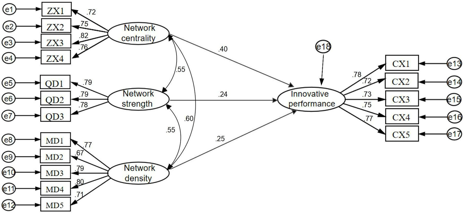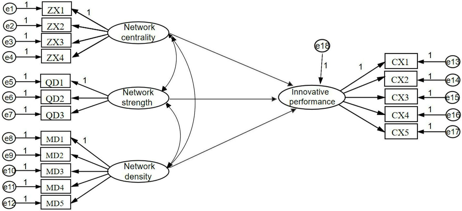 Innovation is an exceptionally frequent and complex process. Under the general trend of open innovation, the independent innovation method is gradually replaced by cooperative innovation, and the external innovation ability, resources, knowledge and social relationship of enterprises are increasingly obvious in promoting the technological innovation of enterprises. Among them, innovation performance is the benefits or results obtained by firms through activities such as technological innovation, product innovation, and process improvement (Saunila, 2016). The innovation network is the vehicle for collaborative innovation activities. Companies rely on the innovation network they are in to maintain a high rate of innovation and gain a sustainable competitive advantage (Guan and Liu, 2016). The existing literature has mainly studied regional innovation networks (Lyu et al., 2019), technological innovation networks (Jiang et al., 2020), collaborative innovation networks (Xie et al., 2016), and cluster innovation networks (Zhong and Tang, 2018; Yue and Zhao, 2022). Among these characteristics, the network density and network structure of cluster innovation networks can effectively leverage the relationships of external subjects that have been or are being established to gain more information and knowledge, positively affecting cluster innovation performance (He et al., 2018). Relying on the innovation network of cluster enterprises, enterprises gradually shift from unilateral “closed door” to open collaborative innovation. With this approach to innovation, firms are able to draw on a wider range of innovation elements, which is conducive to seizing potential innovation opportunities. However, most of the existing research objects are traditional or more maturely developed industrial cluster enterprises, less research is conducted on emerging technology cluster enterprises in the early stage of development, and there are some gaps in the research objects.