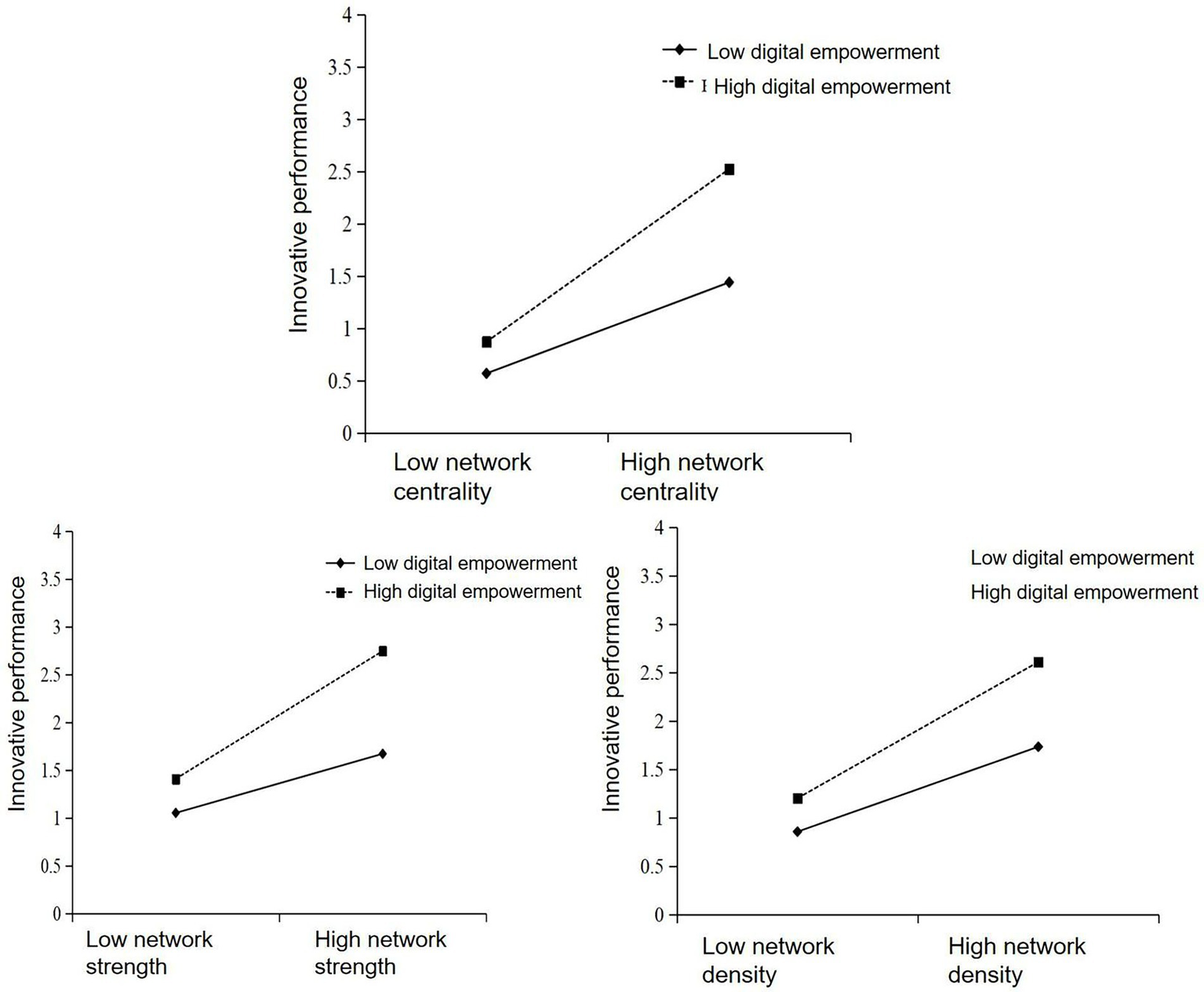 H6: Digital empowerment has a positive moderating effect on cluster innovation network density and innovation performance