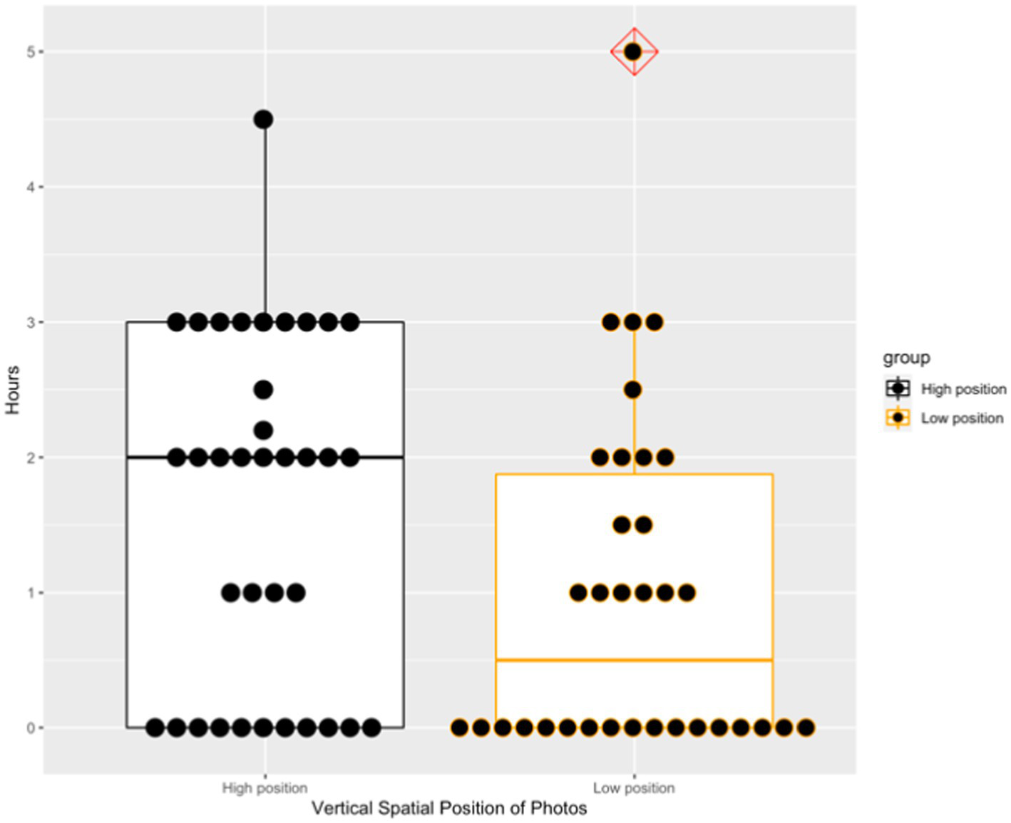 Hypothesis 3: Social targets at a higher vertical spatial position are inclined to get more help than those at a lower vertical spatial position.