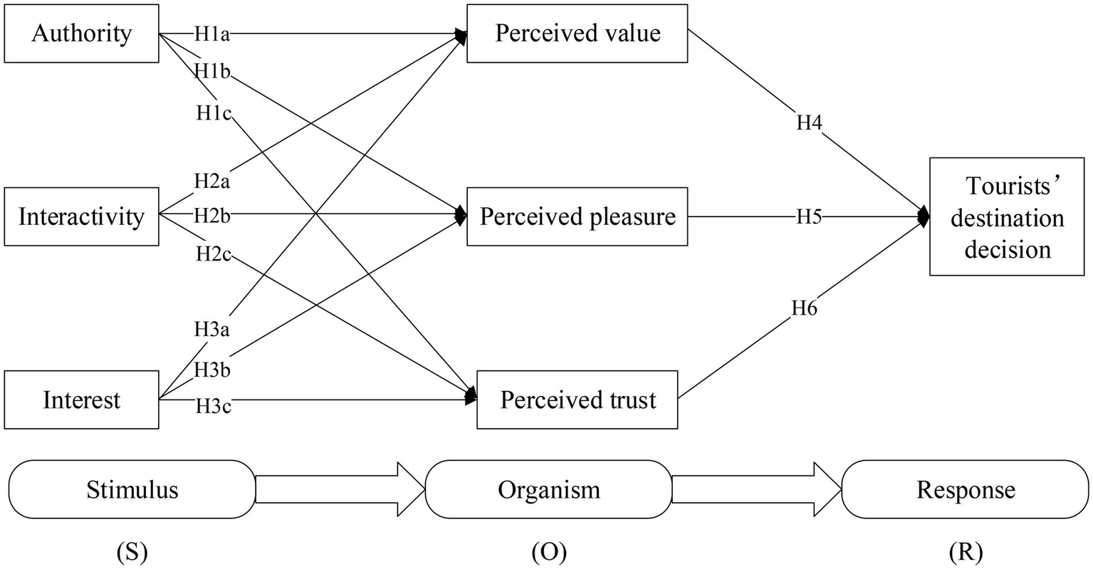 Combined with the SOR model, the official promotion short video, with its special communication mechanism, will be used as an external stimulus to affect the perception or sentiment of potential consumers in the process of watching and then make them produce the decision-making behavior reaction of tendency or avoidance. Taking this model mechanism as a reference, according to the existing research literature results, this study proposes the hypothesis that tourists, as potential consumers, can get stimulation from watching official promotion short videos, which are characteristic of authority, interactivity and interest. After obtaining such an external stimulus, the tourist organism will generate the cognitive reaction of obtaining perceived value, producing perceived pleasure and perceived trust. After the perception reaction is generated, it will further influence the final decision of tourists as potential consumers to accept or reject the destination (i.e., the response). This study verifies and analyzes the above hypotheses based on the questionnaire data.
