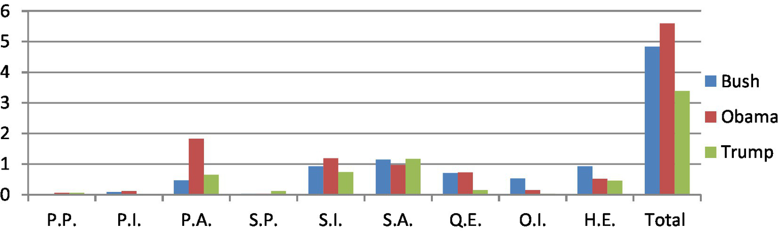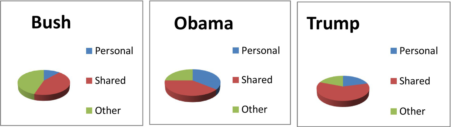 In sum, shared evidentials are the most typical evidentials used by the speakers to normalize their ideology or legitimize their proposals/actions. For example, Trump tried to delegitimize Obama’s political action by using shared assumed evidentials in Example (11). We learned that the facts or truth can also be manipulated or presupposed by using shared evidentials.