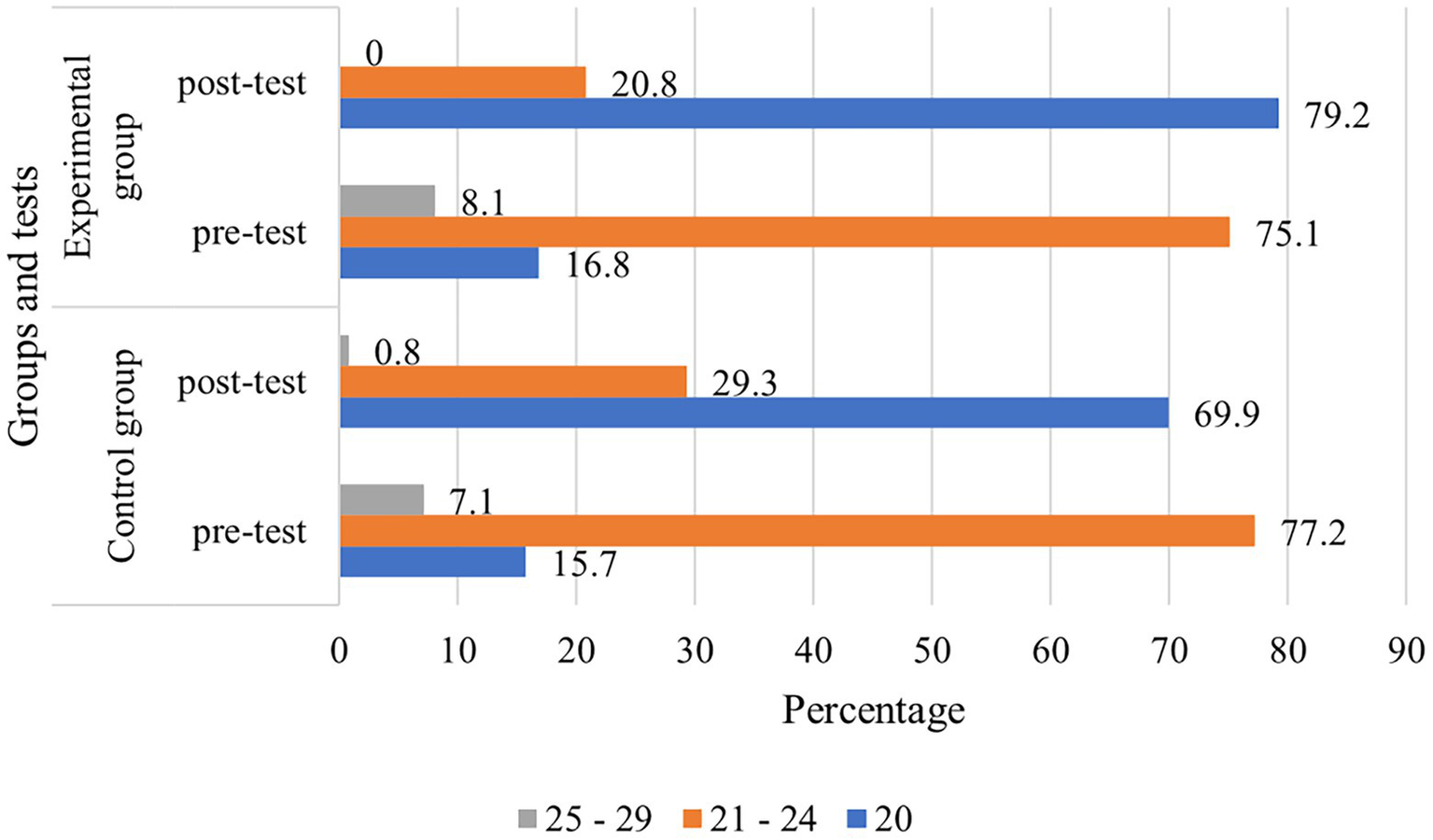 Pre- and post-testing results by group.