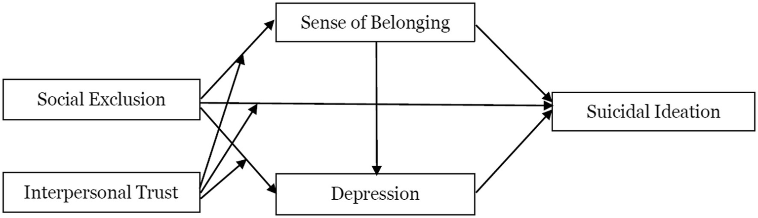 H2: Belonging and depression play a chain mediating role between social exclusion and suicidal ideation in older adults.