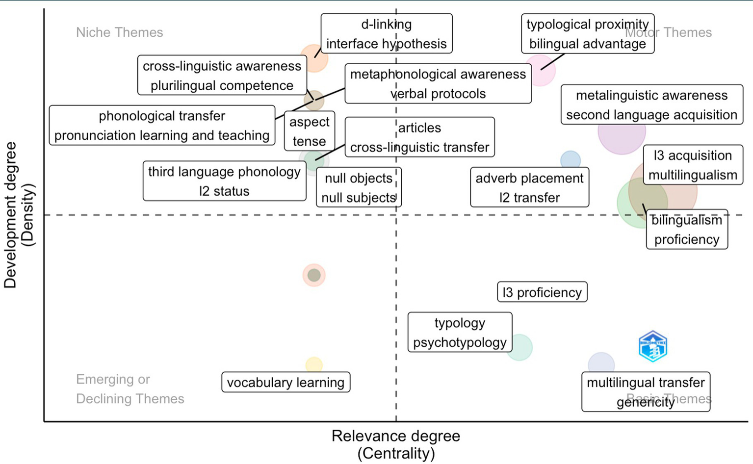 The search terms used in Lin and Lei (2020) were bilingualism and multilingualism, and the results contain studies on both lines of research. However, the interchangeable use of these terms may result in a common misconception in academia (Sánchez, 2020). Multilingualism is a broader and more complex term than bilingualism, considering that it may encompass multiple language contacts and diverse learning settings. Instead of including all publications indexed in the database WoS on SLA, Zhang (2020) has selected the 16 most influential journals on SLA without performing a term search to exclude papers irrelevant to SLA published in these sources. Moreover, “current models of SLA and bilingualism cannot adequately explain the unique traits that form the character of TLA” (Marx and Hufeisen, 2004, p. 142) since the development, process, the affecting factors, among other factors, present such a uniqueness that we can not equal third language acquisition to second language acquisition. In this sense, the results of the two studies may not fully account for third language acquisition. Hence, while previous research by Lin and Lei (2020) and Zhang (2020) has contributed greatly to understanding the state-of-art foreign language acquisition, a more comprehensive and concrete analysis of studies on L3 acquisition, including both performance analysis and scientific mapping, appears to be lacking.