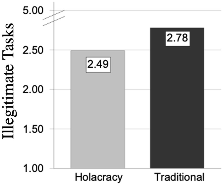 Hypothesis 1. People who work in holacratic companies will experience fewer illegitimate tasks than people who work in traditional companies.