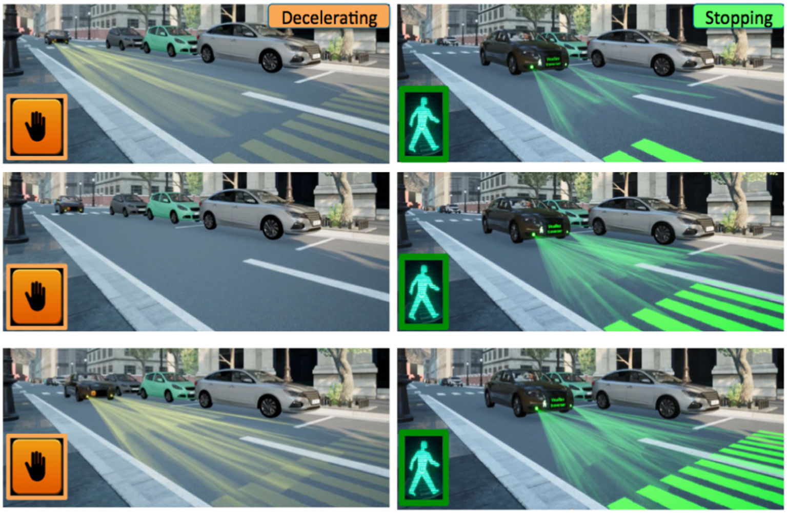 eHMI when the AV is decelerating (left sequence) and stops (right sequence).