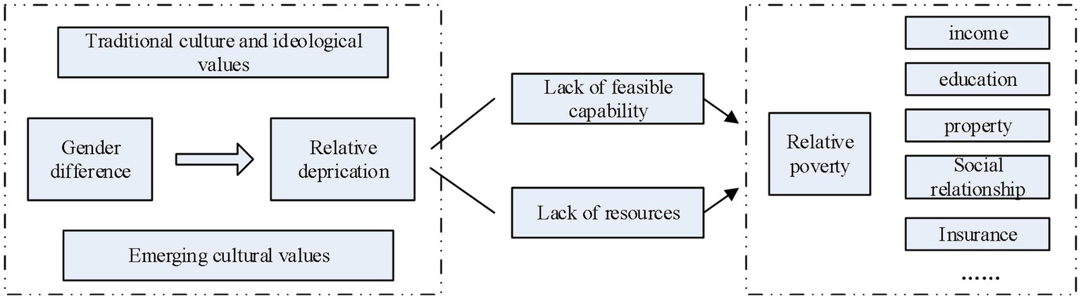 Deriving on the research on the formation mechanism of rural women’s relative poverty, women’s relative poverty group is easily concealed, and the unfair distribution of resources and rights affects women’s rights, opportunities, and achievements throughout their lives. Hence, women’s impoverishment has multiple manifestations. They are more likely to be relatively deprived of the economy, rights, health, ability, and information, resulting in their relative poverty.