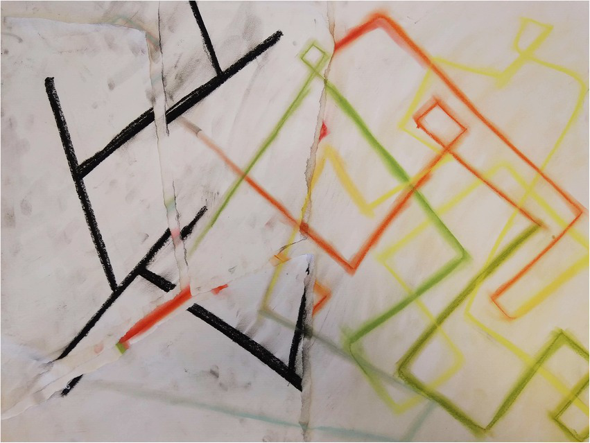 The question of how art therapy works with opposites can be answered with several descriptions. Art therapy has a connecting quality using creative processes in which different diffuse and unstable aspects of the patient with a personality disorder are brought together. Inner conflicts and contradictions between feelings and impulses are expressed in artwork in the form of opposites, making visible the fragmented and fragile self, promoting awareness, insight and self-reflection (Haeyen, 2011; Haeyen et al., 2015; Haeyen, 2018). Opposites offer an entrance to exploring the issues at hand in the creative process, and it is through opposites that the resulting shapes of that creative process can be perceived as a meaningful representation of the situation (e.g., Rhyne, 2016). Furthermore, art therapy is explicitly mentioned as affecting the processing of intrapsychic conflict (Jádi and Trixler, 1980) through the stimulation of integrating experiences (Haeyen, 2007; Van Vreeswijk et al., 2008; Gunther et al., 2009; Haeyen, 2011).