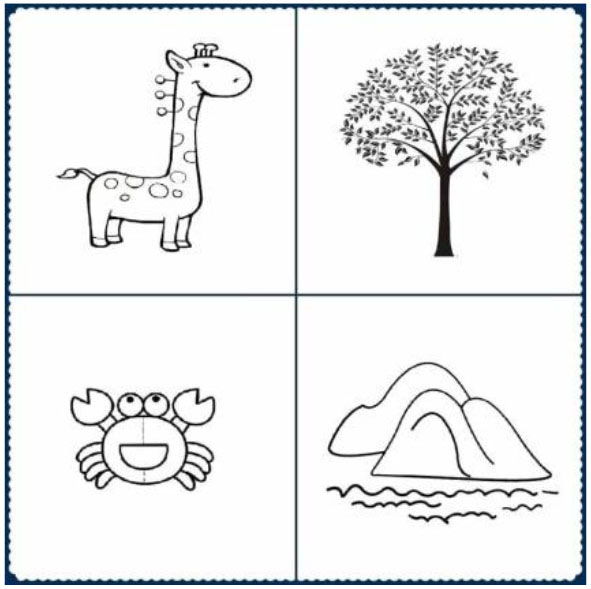 Receptive vocabulary skills were measured using the Chinese version of the Peabody Picture Vocabulary Test-Revised (C-PPVT-R; Sang and Miao, 1990), which is an adaptation of the PPVT-R (Dunn and Dunn, 1981) and can be widely used to measure the vocabulary of children aged 3–9 years. DelPhi was used to compile PPVT items into a computer program and performed on a Lenovo Yoga touch-screen computer. Children were required to point to the correct one of four pictures that represents an object or action named in the instructions (e.g., “plant”, refer to Figure 2). This test contains 120 items ordered in sets of 4 pictures of the same size and similar difficulty. Each item of pictures was presented for 30 s. The participants' score was the total number of correct answers (total score: 0–120). The task was discontinued when participants made six mistakes out of eight items.