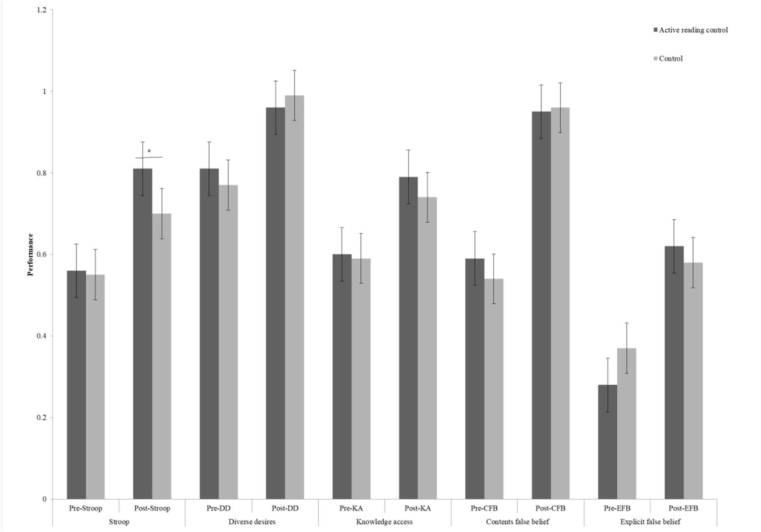 Session performance for control and active reading control group.