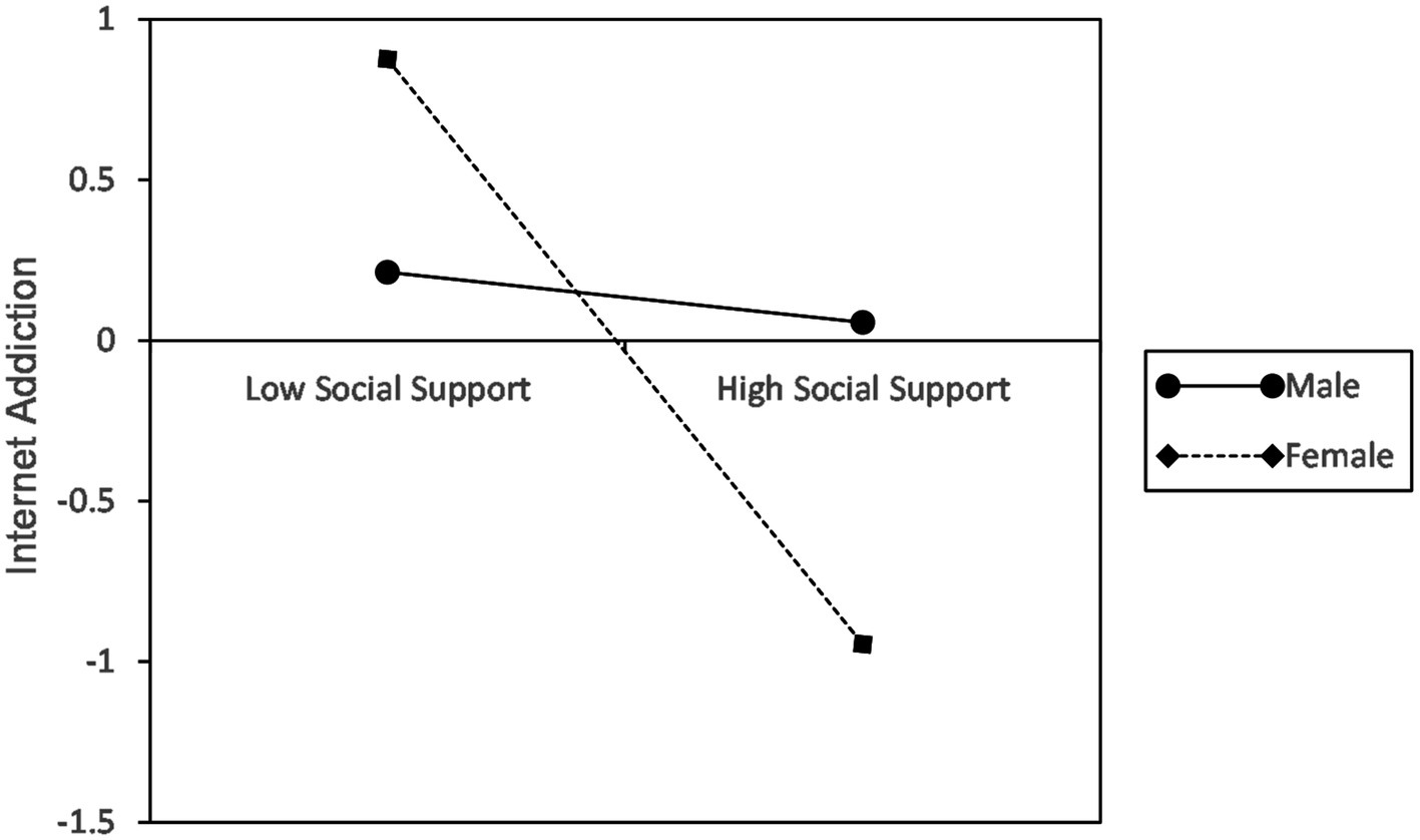 Moderating effect of gender on social support and Internet addiction.