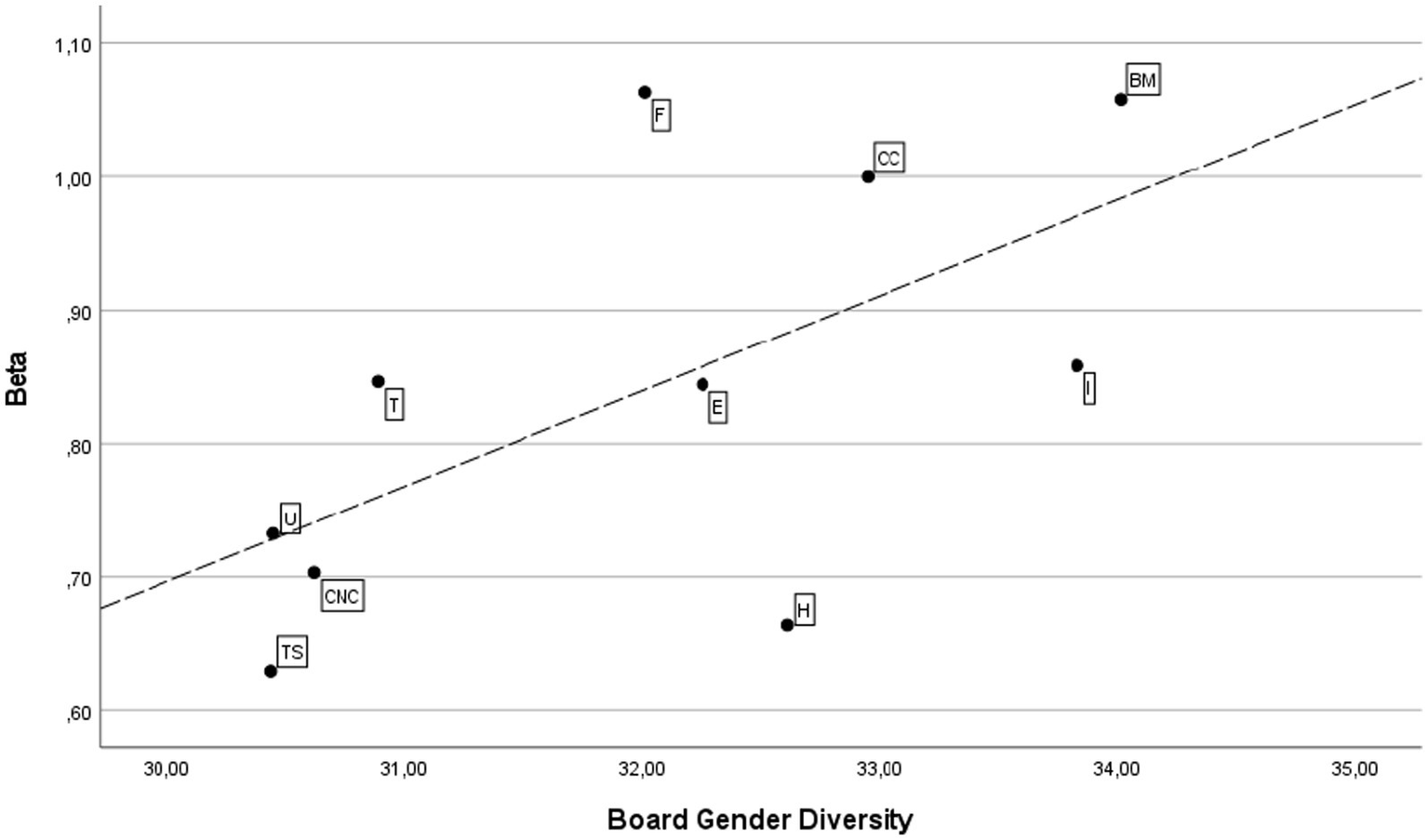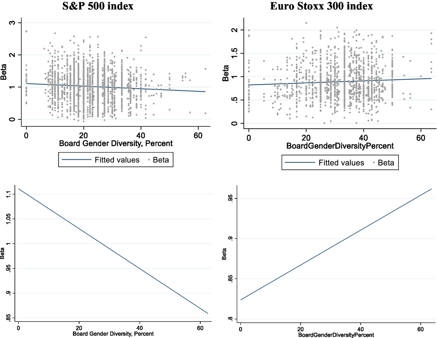H2: The percentage of women on the board of directors is negatively related to the market beta of the company’s stocks in the European market.