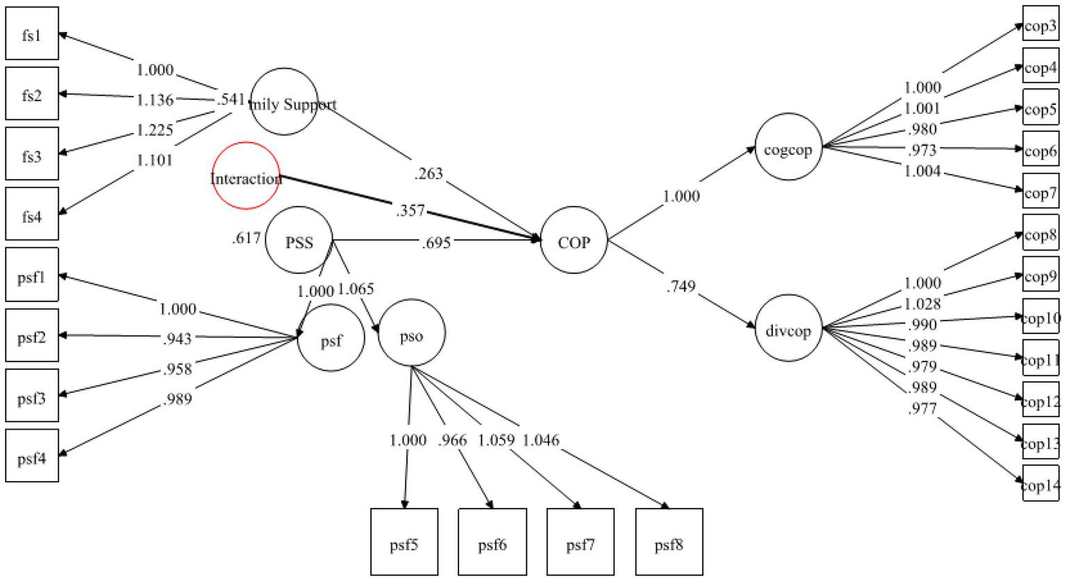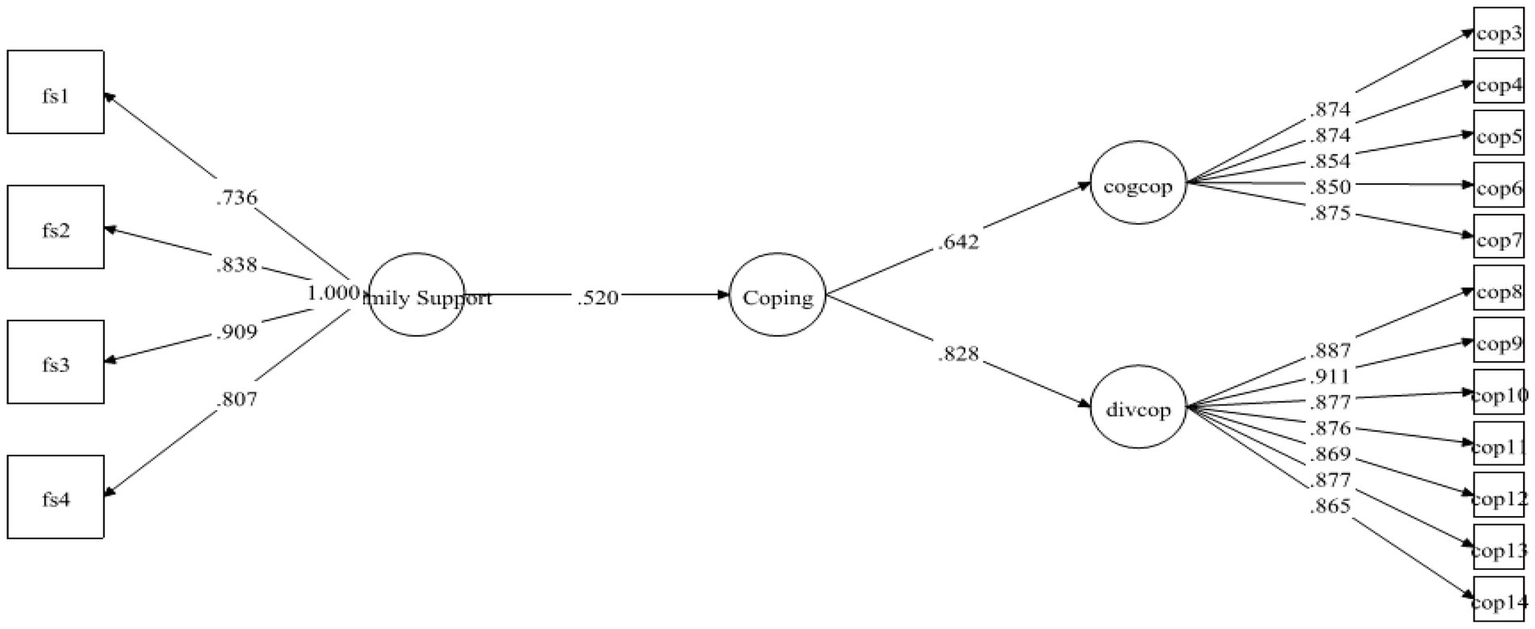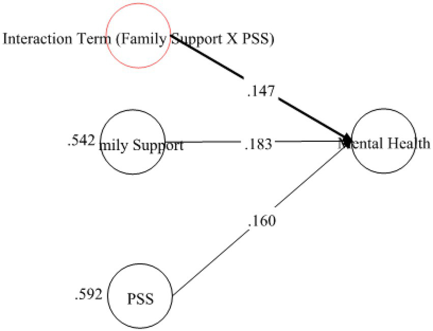 Results: The results demonstrated that family support was strongly positively linked to mental health and predicted coping strategies. The direct relationship analysis showed that coping strategy strongly predicted mental health. Furthermore, coping strategies significantly mediated the relationship between family support and mental health. Additionally, the results highlighted that PSS significantly moderated the path of family support and coping strategies only.