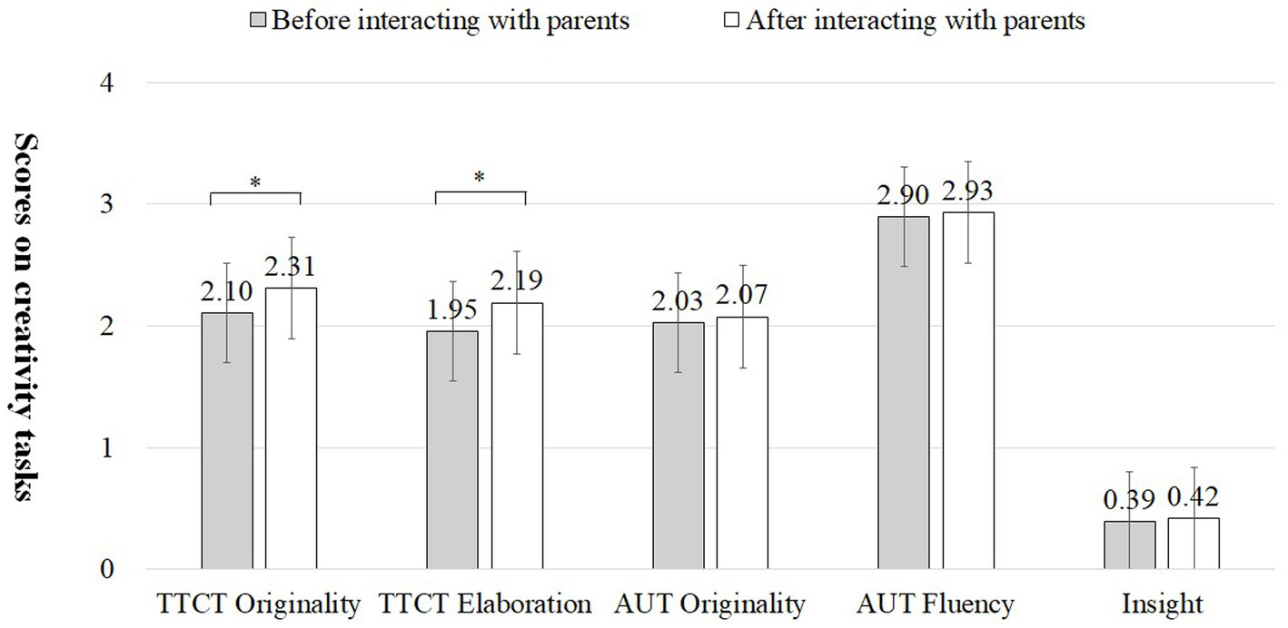 Figure 3. Differences in children’s scores on creativity tasks before and after interaction with parents.