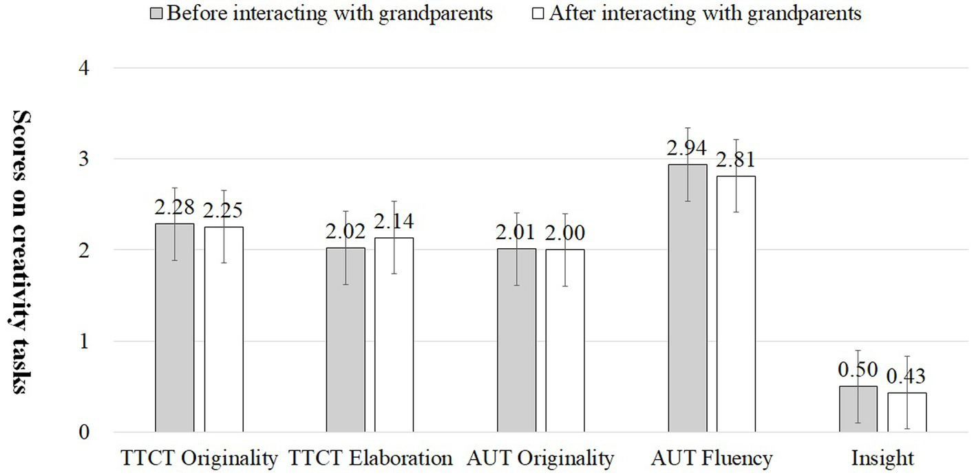 Figure 4. Differences in children’s scores on creativity tasks before and after interaction with grandparents.