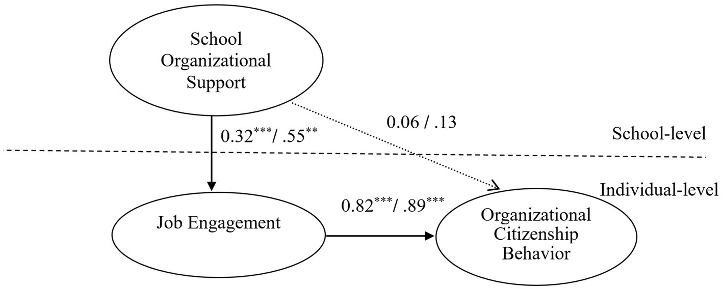 job engagement, organizational citizenship behavior, school organizational support, structural equation modeling, multilevel structural equation modeling