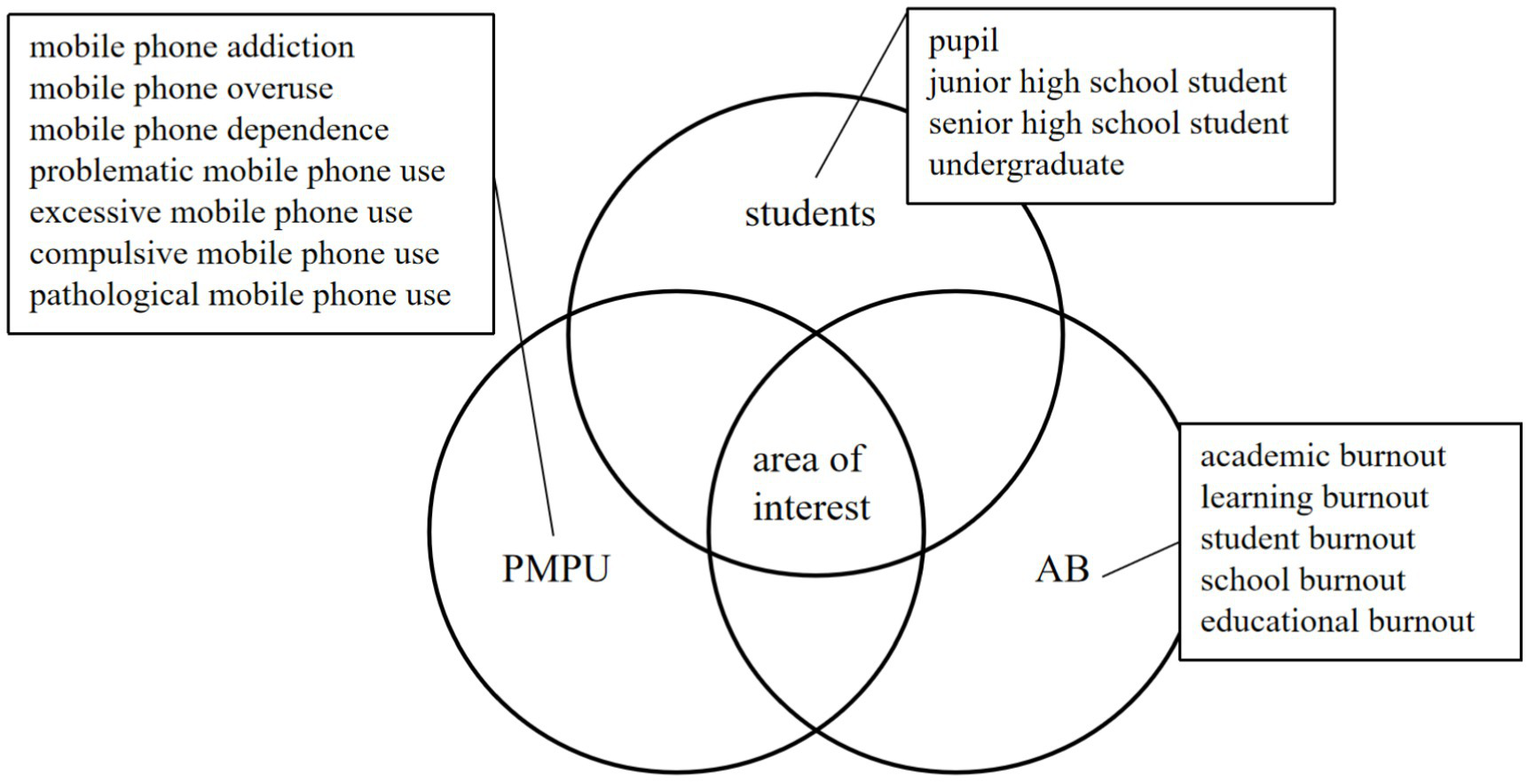 We used databases to search the related studies on AB and PMPU in Mainland China from January 2012 to November 2022, including CNKI, Wanfang Data, Chongqing VIP Information Co., Ltd. (VIP), Baidu scholar, ProQuest dissertations, SAGE Online Journals, Elsevier SDOL, Taylor & Francis, Springer, Web of Science, Google Scholar, EBSCO, PsycINFO, Medline, Scopus Database, PubMed Central, Embase, The Cochrane Library. In Figure 1 (Miller et al., 2018; Scott et al., 2018), the specific search terms are listed next to AB, PMPU and students. This paper studies the relationship between AB and PMPU of students.