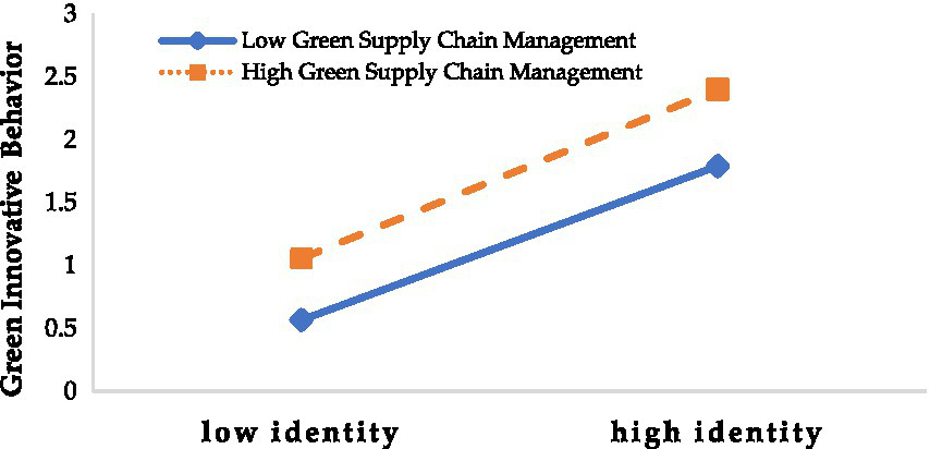 H3: Green supply chain management positively moderates the relationship between green environmental protection identity and employees’ green innovative behavior, that is, the higher the level of green supply chain management, the stronger the relationship between identity and green innovation behavior, and vice versa.