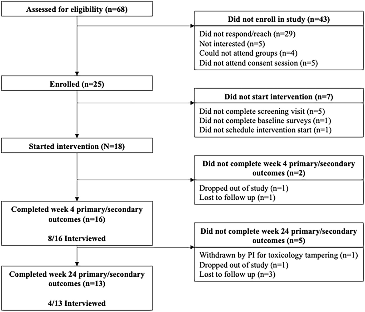 | ID Number | Week 4 Interview | Week 24 Interview | Number of Groups Attended/Number of Groups Scheduled to Attend |