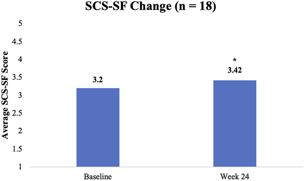 Change in SCS-SF scores from baseline to week 24. *p < 0.05
