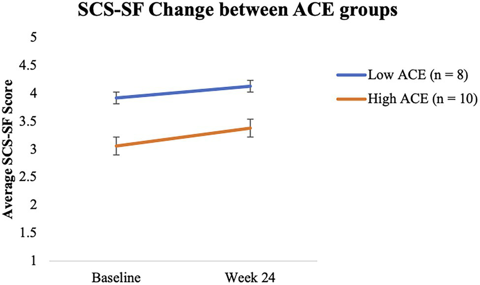 Change in SCS-SF over time between ACEs groups.