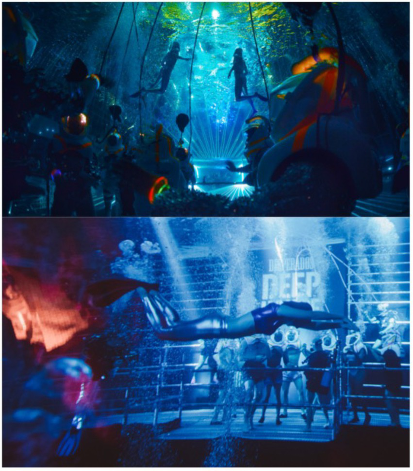 The Deep House party was hosted by Y-40, at the time the world’s deepest indoor pool, located in Venice, Italy. Using a between-groups design, participants were randomly assigned to the experience or control conditions ahead of time. Respondents in the control condition completed a battery of questionnaires and measures of creativity prior to Deep House, and testing took place in a private area of the hotel where participants were lodging. Those in the experience condition completed all tasks immediately after their time in the underwater pool. Testing took place in a cordoned-off corner of the nightclub after they had dried themselves, and before they re-joined the party.